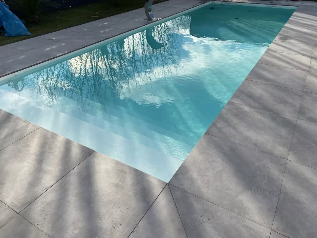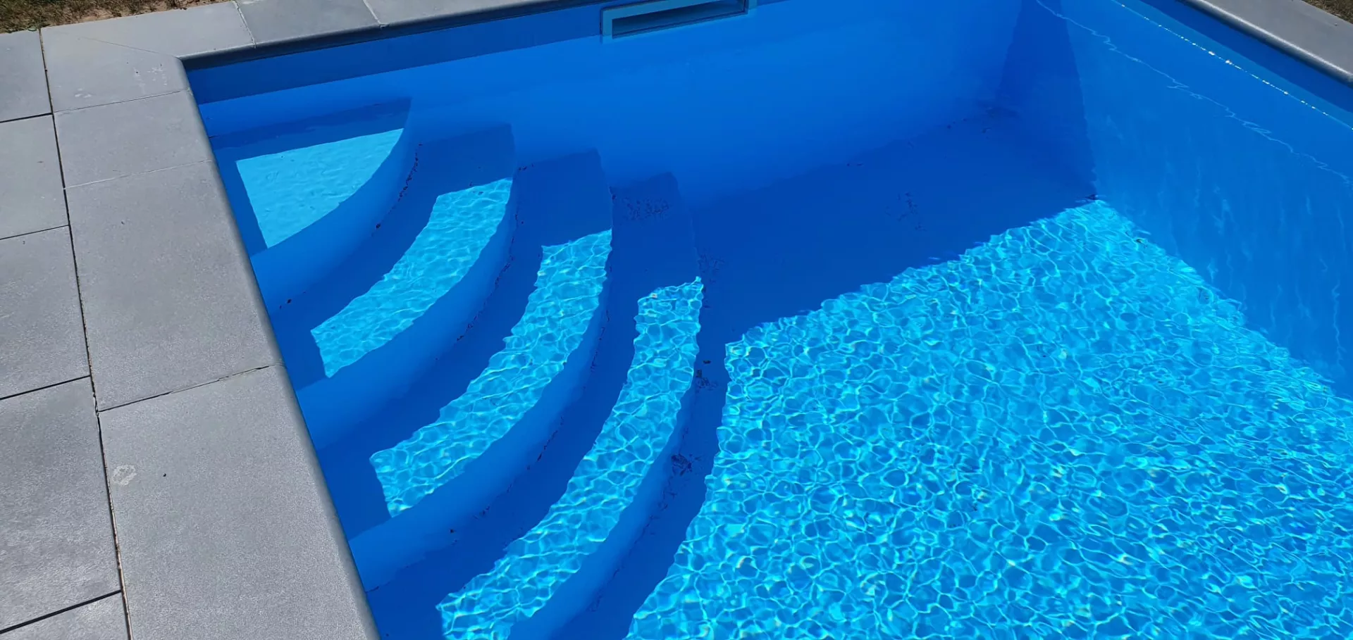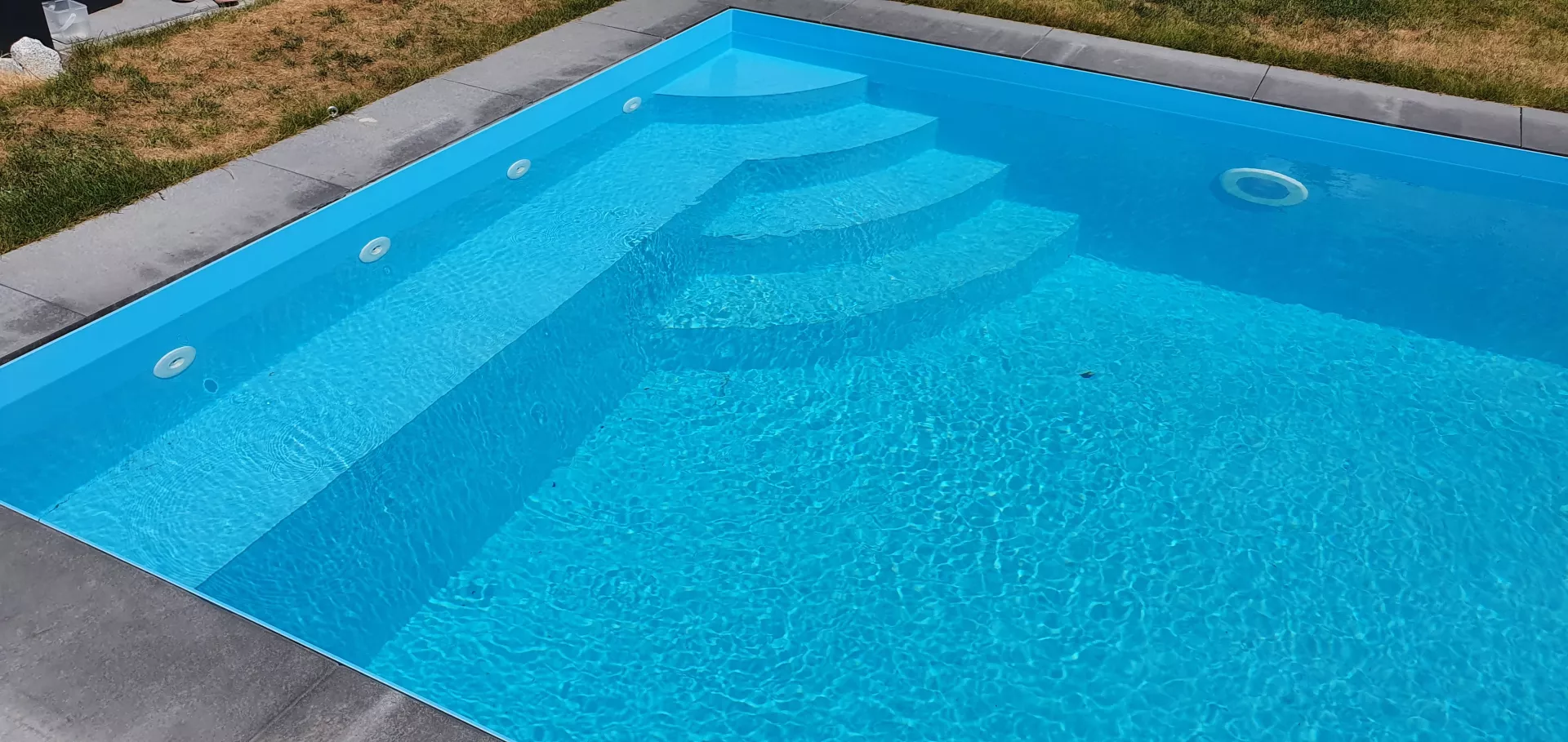 White polypropylene gives the water a very light, delicate shade of blue, which also accentuates the light reflections on the pool's water surface in bright sunlight.