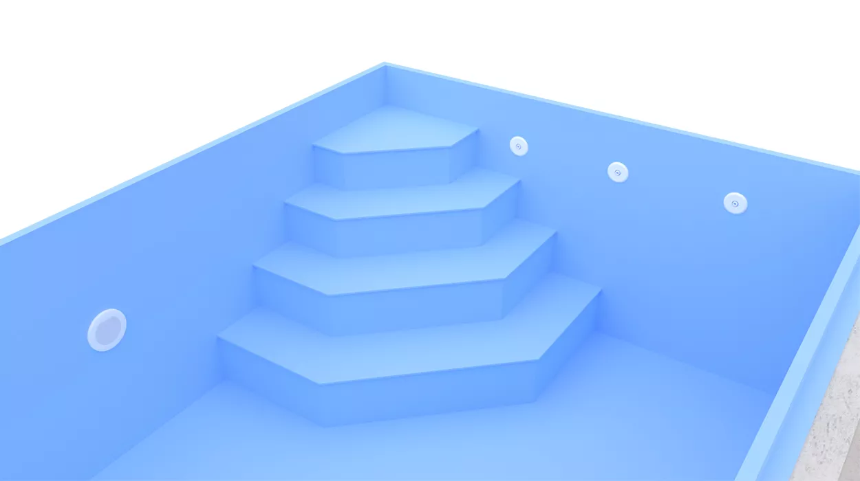 White polypropylene gives the water a very light, delicate shade of blue, which also accentuates the light reflections on the pool's water surface in bright sunlight.