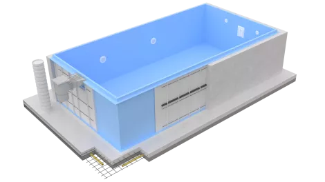 Polypropylene pools with a skimmer are also equipped with high-quality fittings that guarantee safety and durability for years to come. The use of a skimmer is not only an economical solution, it is also aesthetically distinctive and gives the pool a modern look.